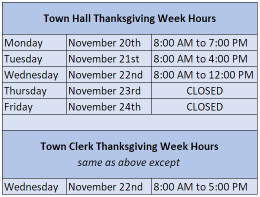 Home » Town Hall & Town Clerk hours Thanksgiving Week