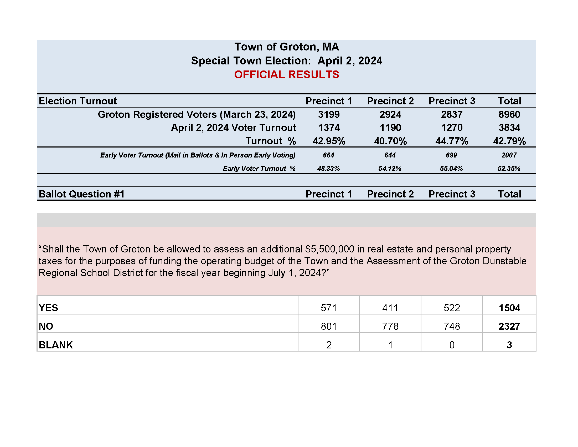 Special Town Election April 02, 2024 – Official Results
