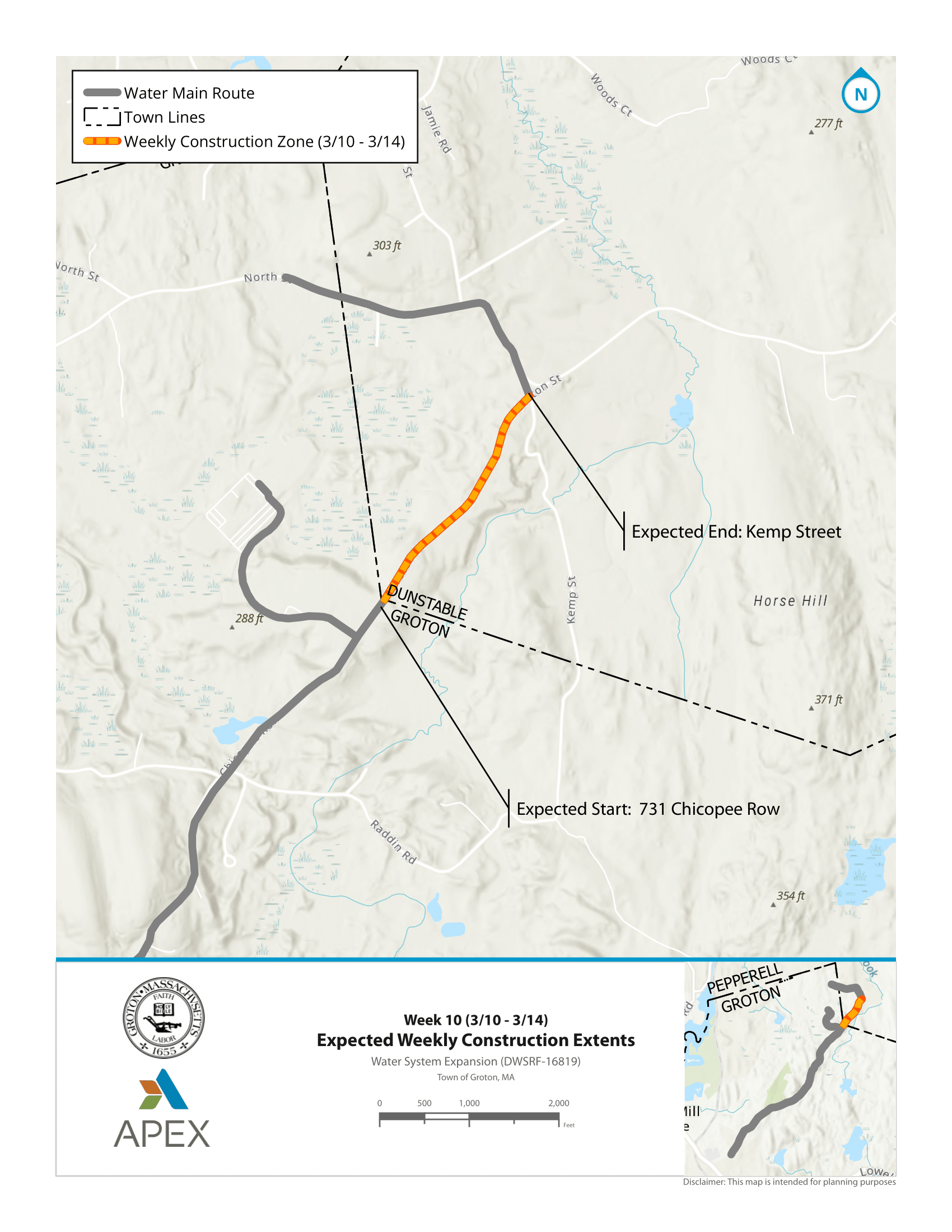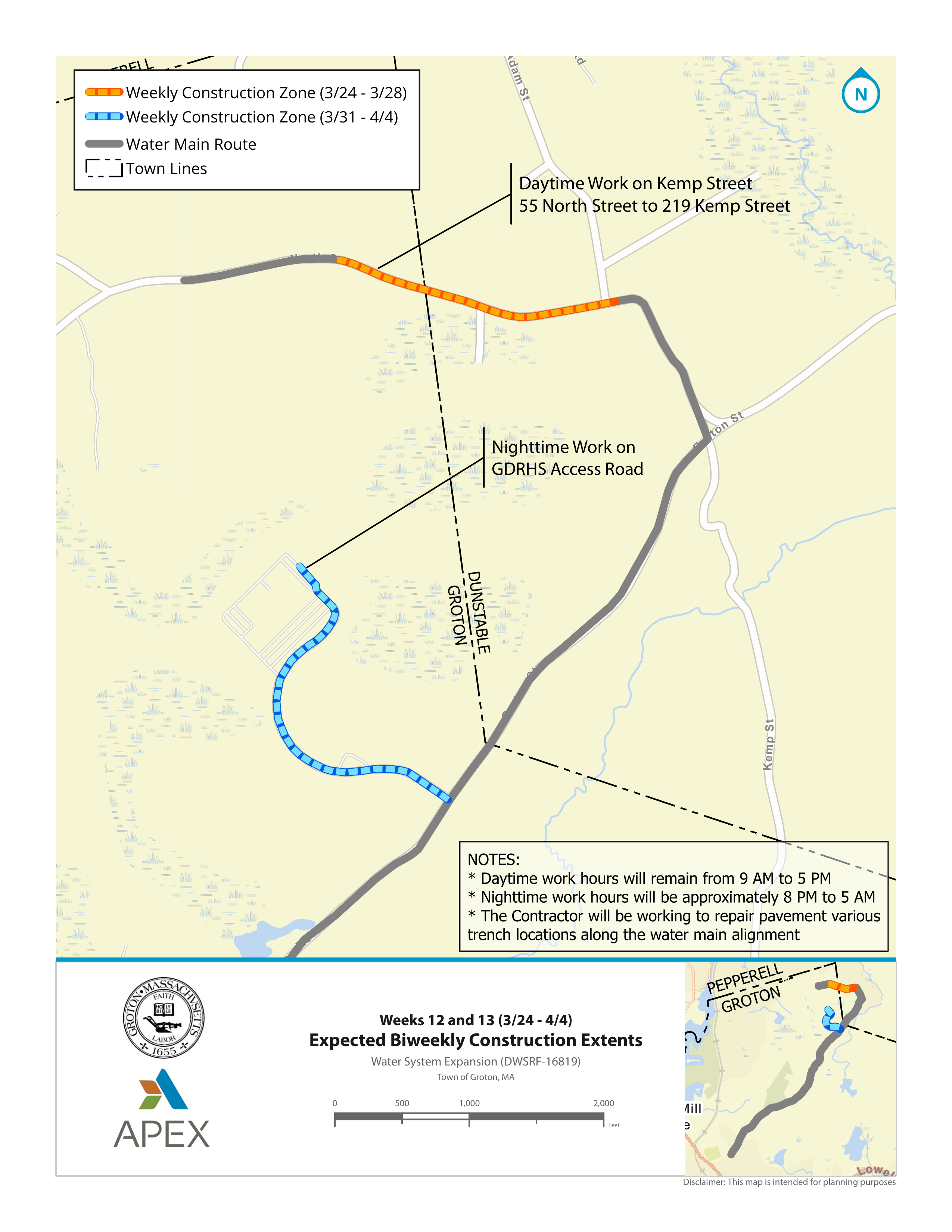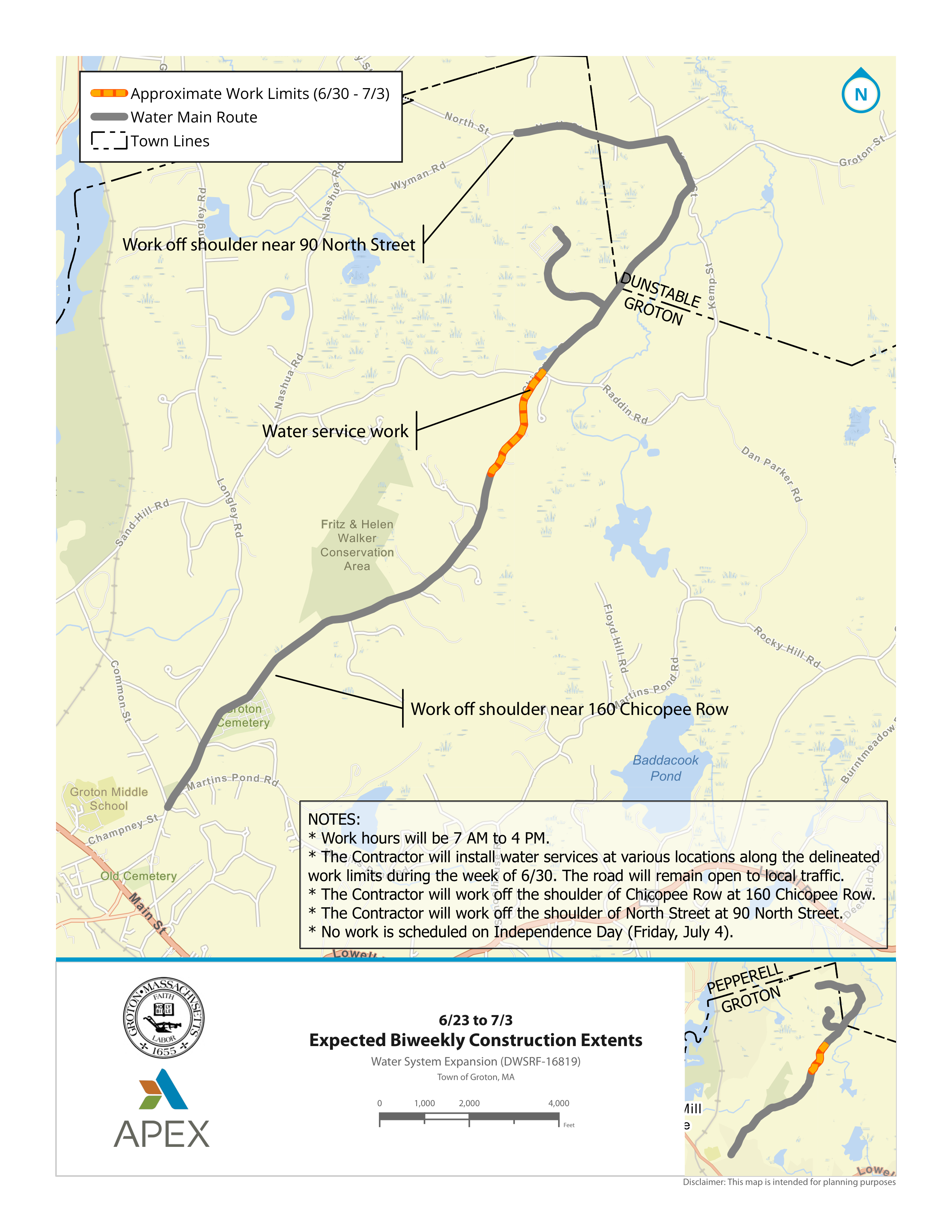 PHASE TWO of this work is to install water mains on Groton Street and Kemp Street in Dunstable and a small section of North Street in Groton.