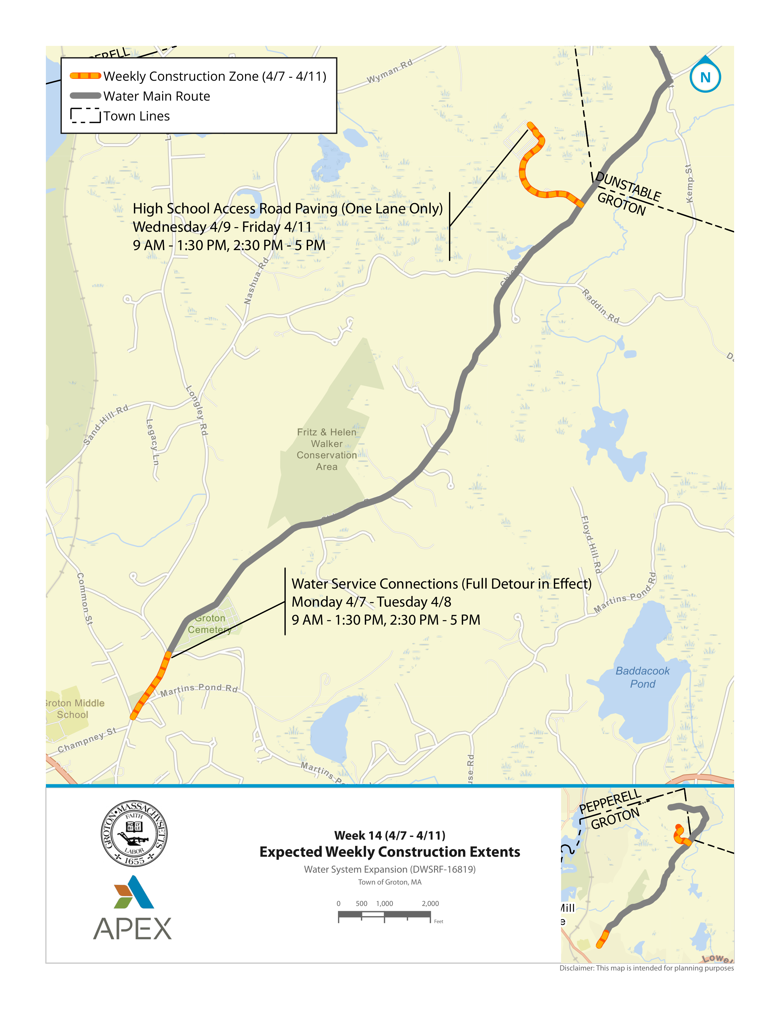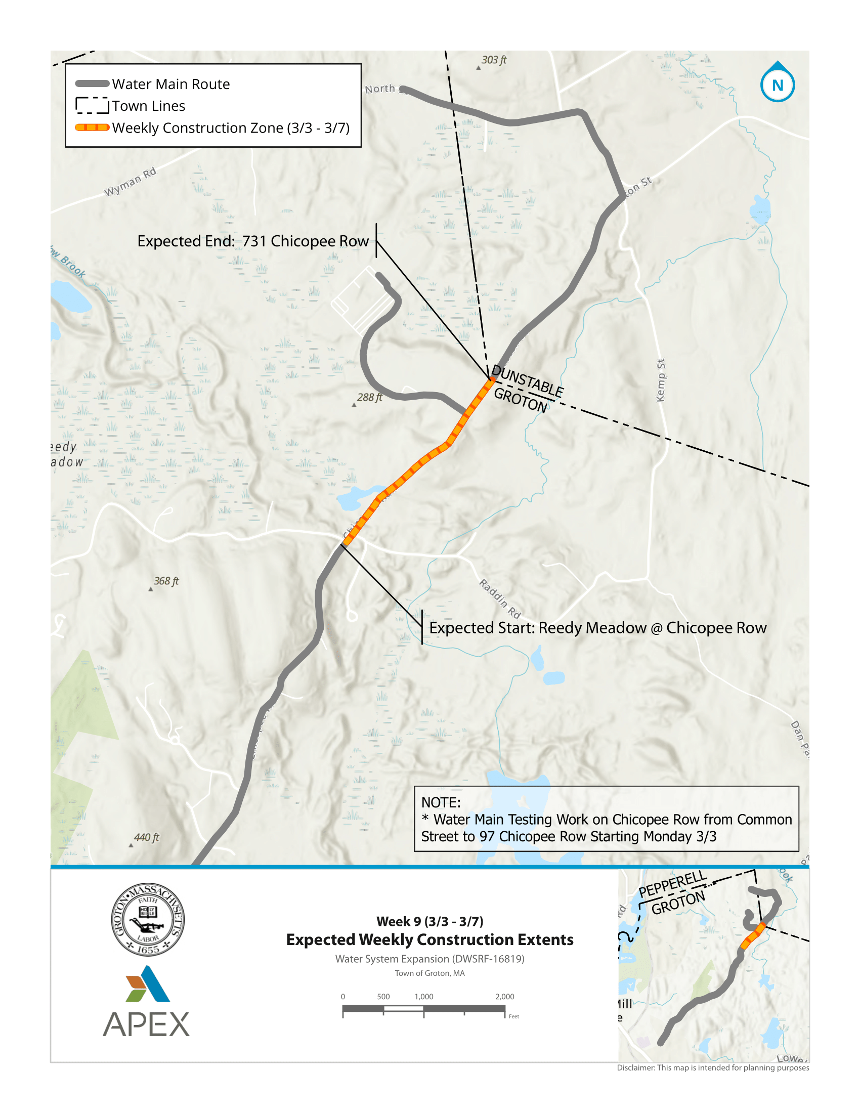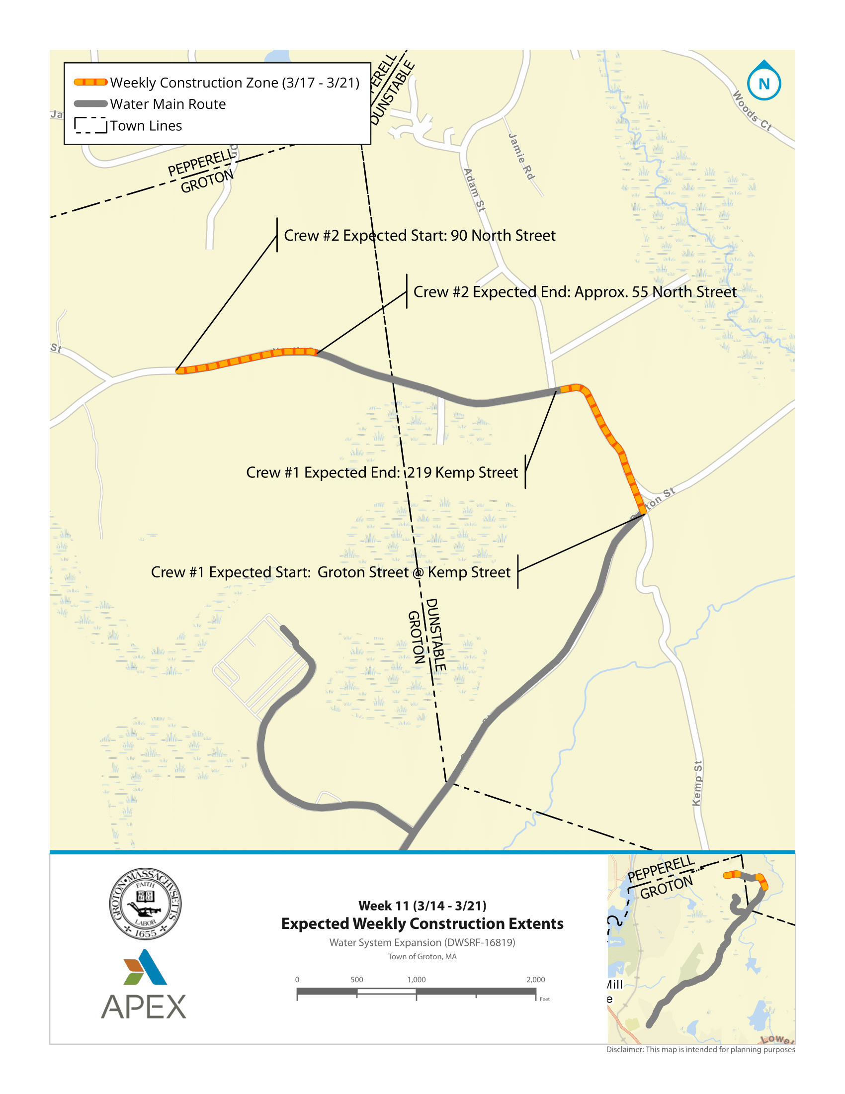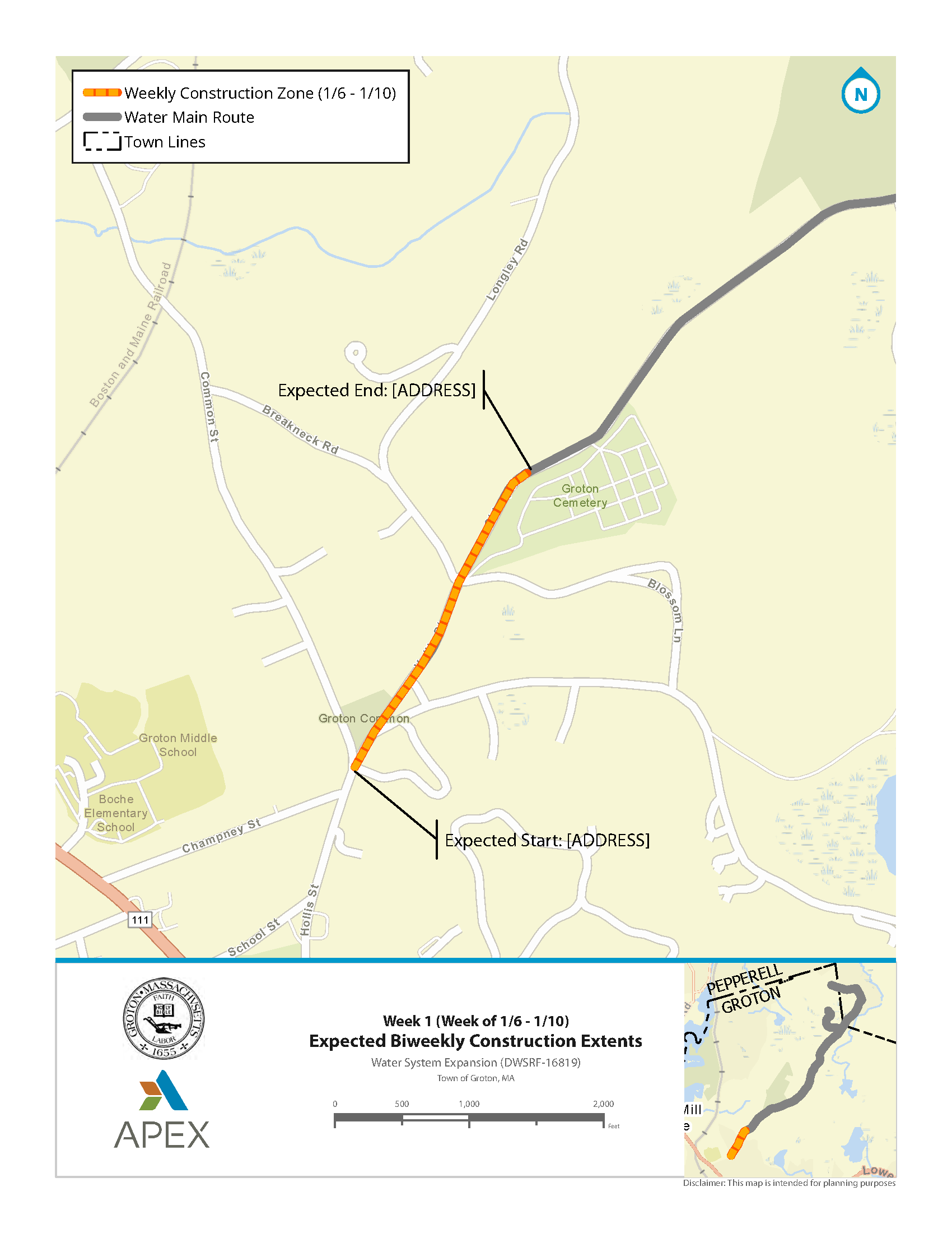 PHASE TWO of this work is to install water mains on Groton Street and Kemp Street in Dunstable and a small section of North Street in Groton.